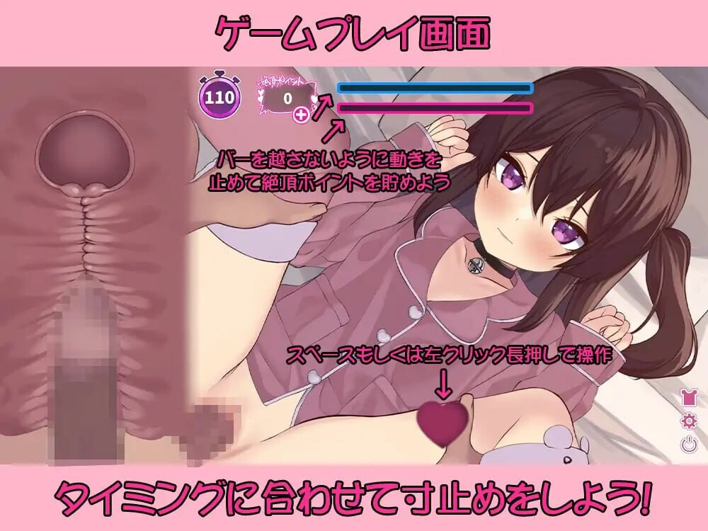 注意!计量条攒满就会游戏结束。在积攒高潮能量的同时,仔细观察她的反应,找准最佳时机完成绝杀!